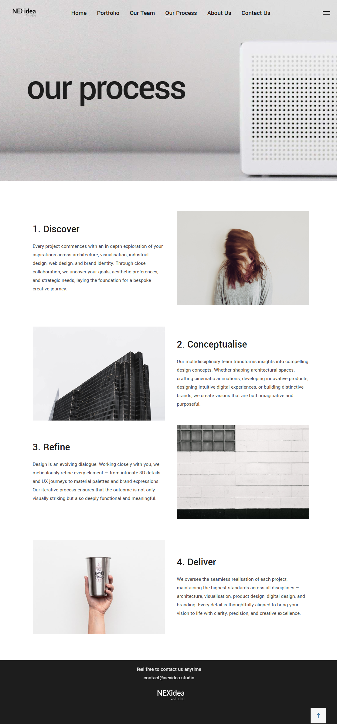 I designed and developed the Nexidea Studio website to reflect the brand’s identity as a cutting-edge creative agency. The site combines bold, modern visuals with smooth interactions and a clean, modular layout. It was built to deliver a high-impact first impression while maintaining fast performance and clear navigation. Subtle animations, strategic use of white space, and a mobile-first design ensure a seamless user experience across all platforms.